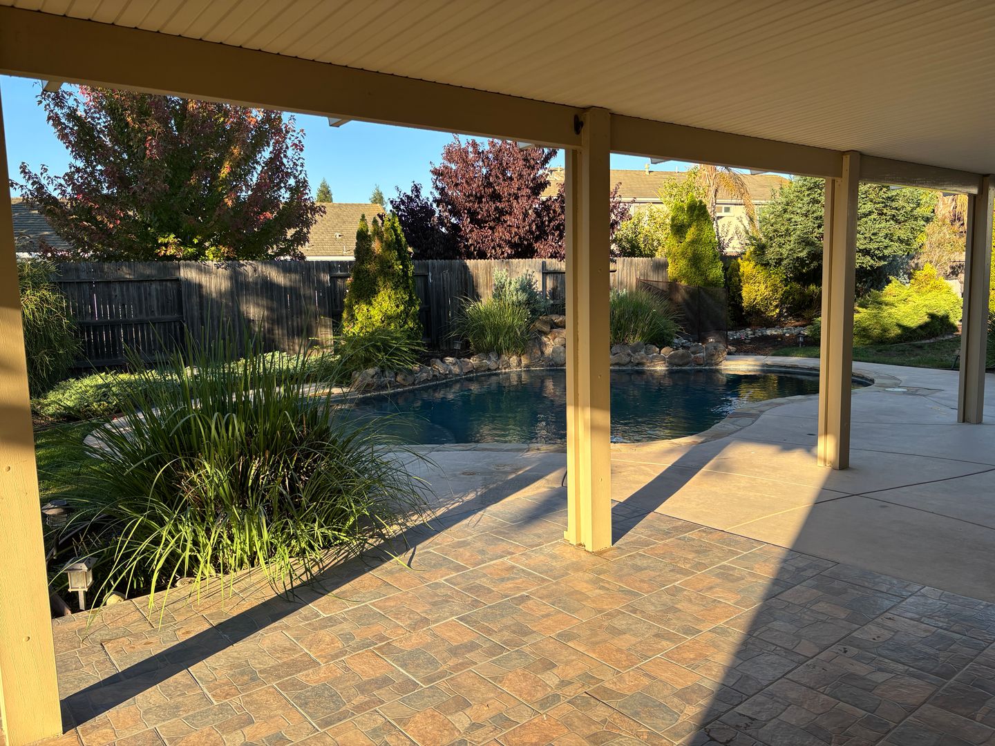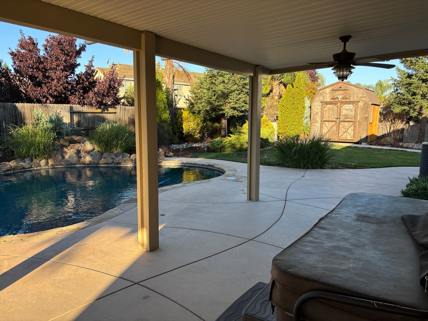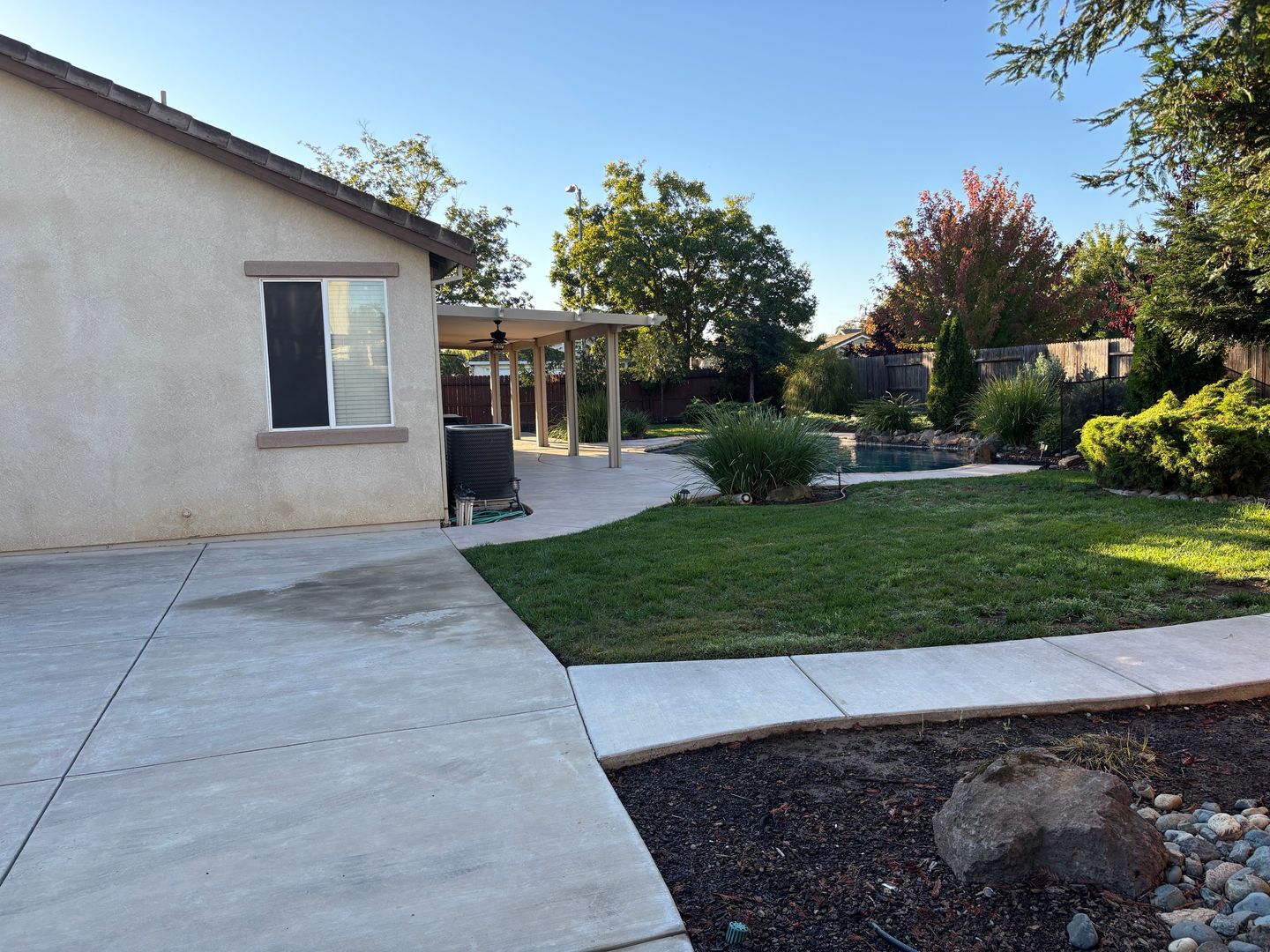 Luxury home, beautiful corner home includes three large bedrooms, two bathrooms and an open floor plan The large backyard has large covered patio with a fan, pool and spa. Shed not included with the lease. The home also has a large driveway with RV access, three car garage and the third car is a drive-thru. No pets and no co-signers. Tenant pays all utilities. Renter's insurance is required with a minimum of $300,000 liability coverage. Owner pays the HOA fees and provides pool and landscaping service. Good credit is a must.