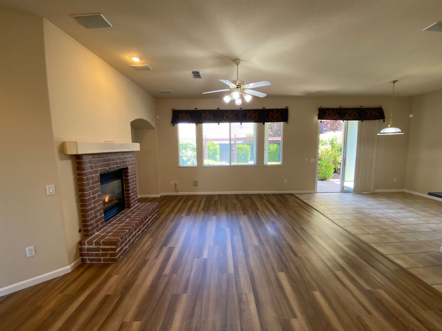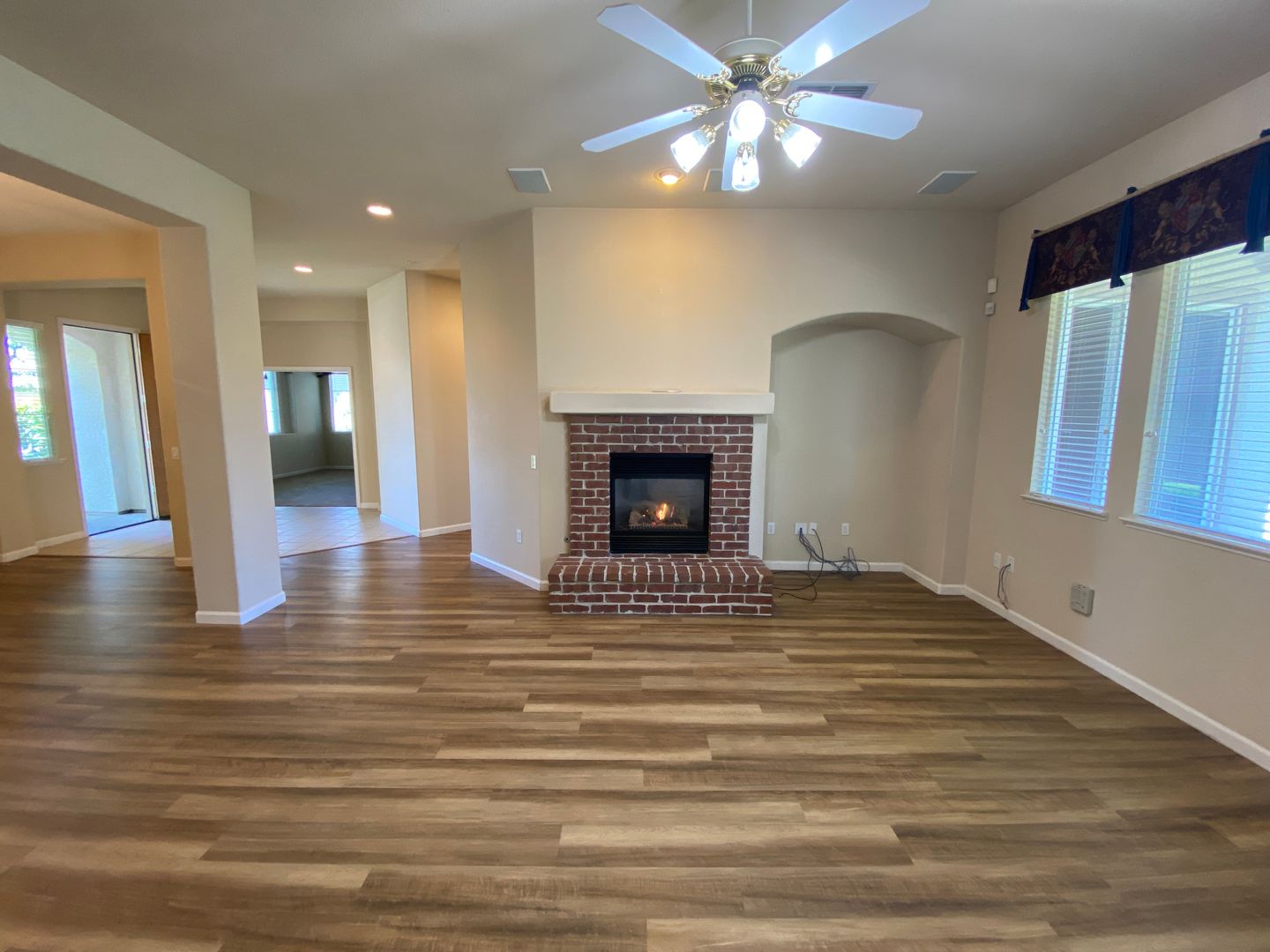 55+ Gated Heritage Lakeside private resort community. The 1,998 sq ft single-story home offers two bedrooms, two bathrooms, a spacious living room with a brick gas fireplace, formal dining, an office/bonus room, and a custom kitchen with a gas range, large island, and ample cabinet space. Luxury plank flooring in hallway and living areas, while bedrooms and office have carpet. Large, covered patio and a beautiful fountain in the backyard. A 30-second walk gives you access to the clubhouse with a gorgeous swimming pool and spa, a fitness center, library, card room, and pickleball courts. There is also access to the beautiful lake promenade. Owner pays HOA dues of $306 per month. No cosigners. No pets. Refrigerator, washer and dryer provided by landlord; washer and dryer come as-is.