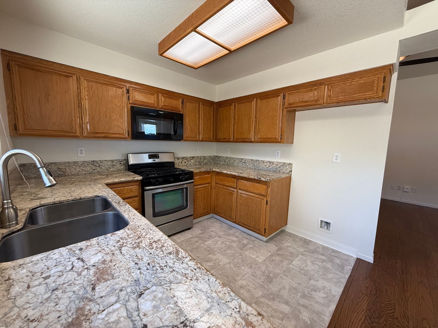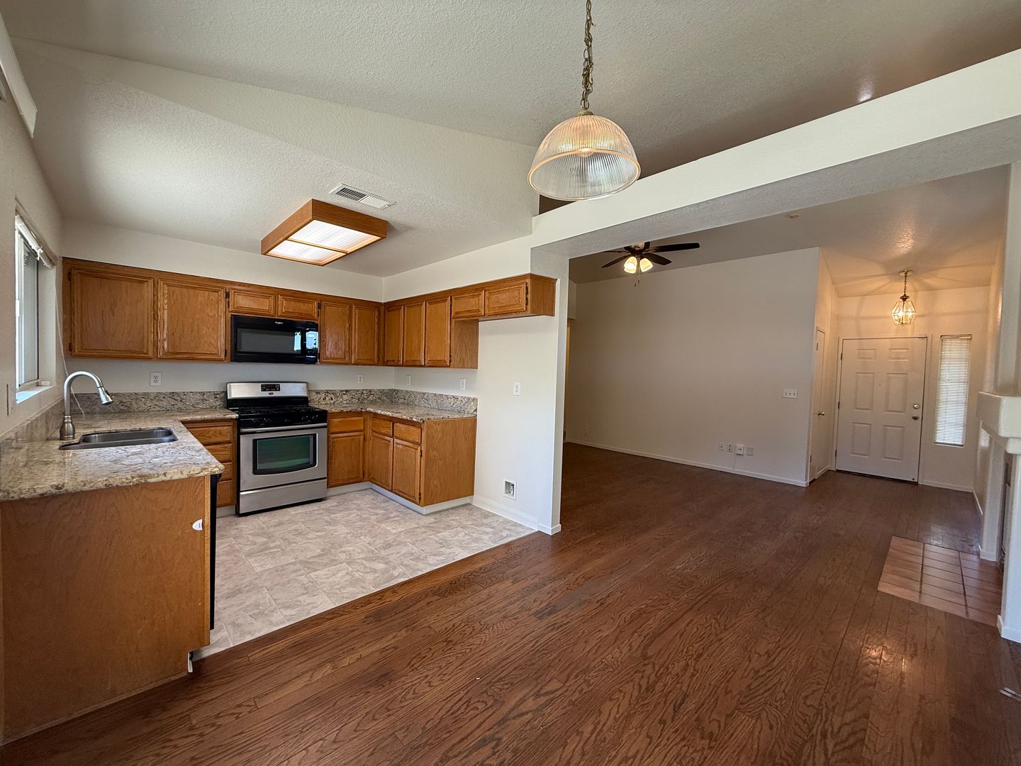 This three bedroom, two bathroom home has the comforts of home. Let's make it yours. Wood laminate and carpet flooring. Marble counter tops and stainless steel gas oven in kitchen. Spacious yard wraps around the house providing lots of space for you to enjoy. Tenant is responsible for all utilities and landscaping. No co-signers, pets or no smoking.