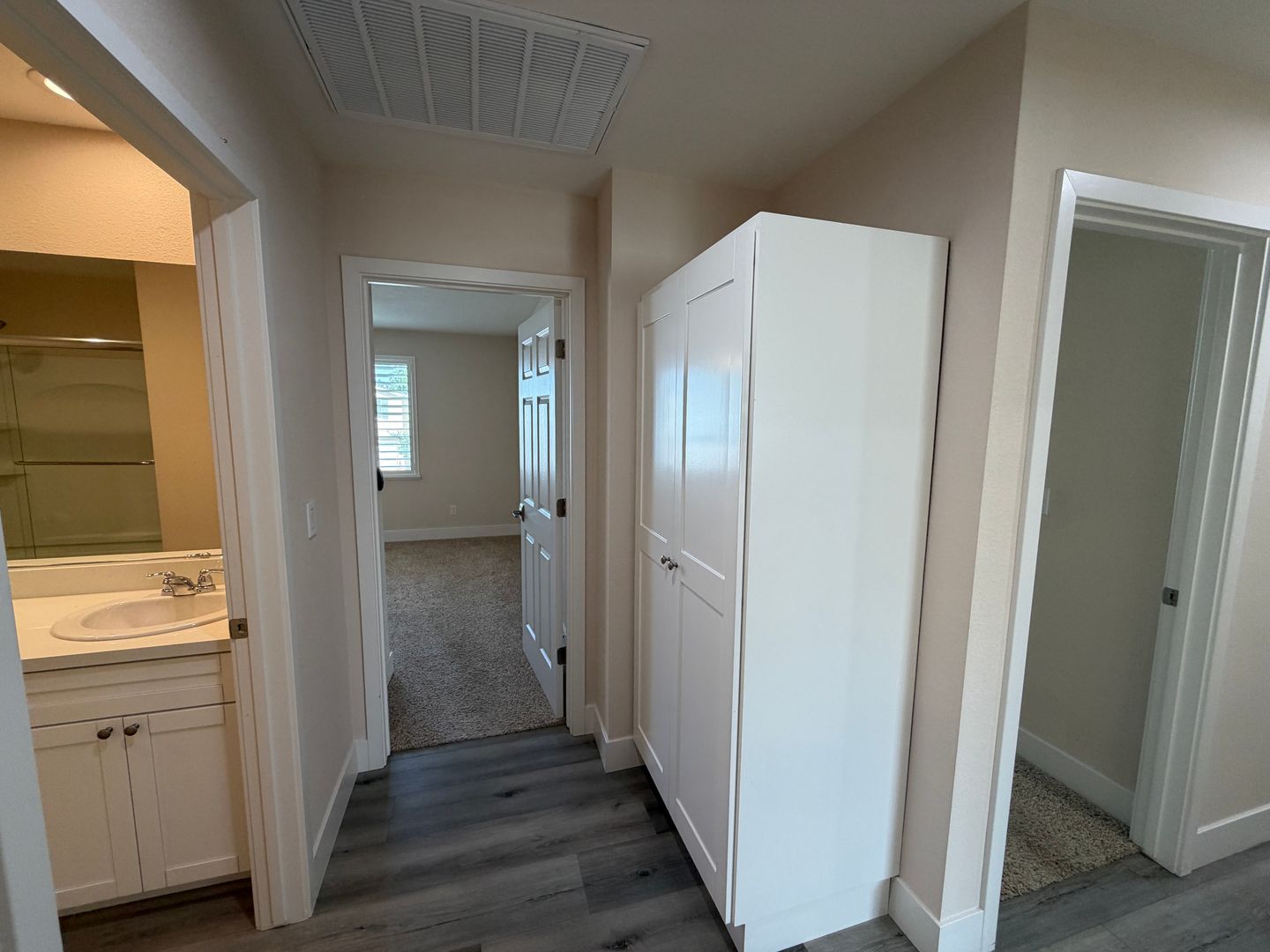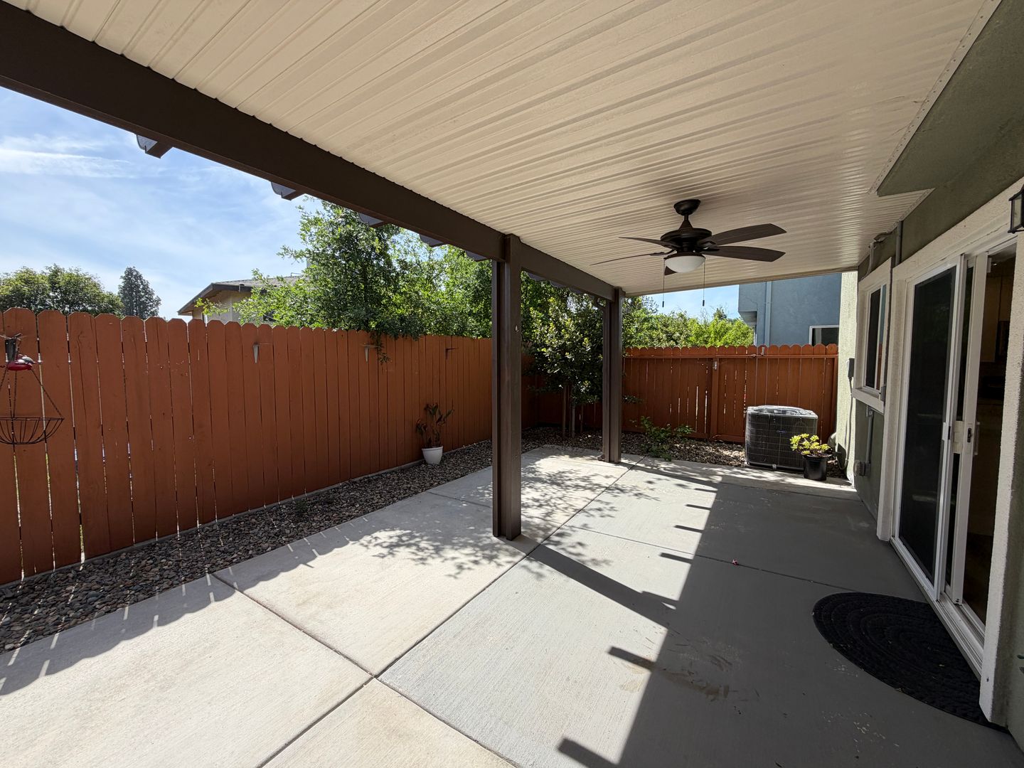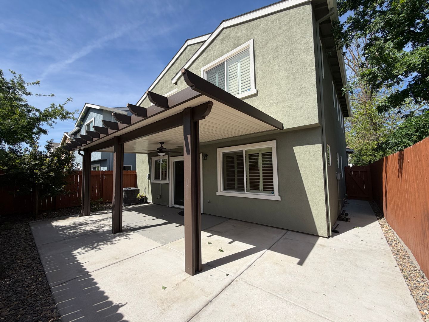 Bright and modern two story home with three bedrooms and two and a half bathrooms at the end of a quiet court in Carmichael is ready for you to call home. Home has wood laminate flooring on the first floor and carpet on the second floor in the bedrooms. All three bedrooms and the living room have remote control operated ceiling fans each with a light fixture. Home has plantation shutters as window coverings throughout. Washer and dryer are provided as-is. Covered patio in rear yard with a fan and light. The rear yard is very low maintenance, no grass to mow. There is an HOA, owner pays HOA dues. Tenant pays for all utilities. HOA responsible for front yard landscaping, tenant responsible for rear and side yard landscaping. Tenant must maintain renter’s insurance with $100,000.00 in personal liability protection during the entire tenancy. Alarm installed in home, monitoring and maintenance of the alarm system would be tenant responsibility. One dog under 25 pounds OR one cat would be considered with increased security deposit.